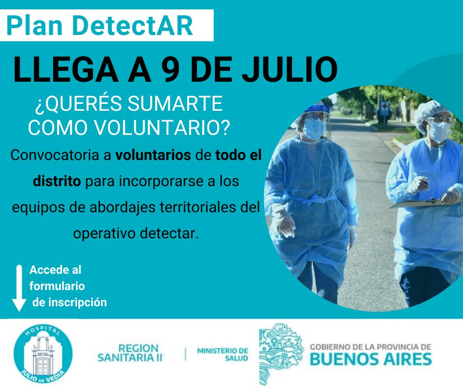 La tarea a desarrollar estará vinculada al Dispositivo Estratégico de Abordaje territorial para Coronavirus en Territorio (DETeCTAR) que se llevará a cabo en los barrios de influencia del municipio de 9 de Julio y localidades aledañas.