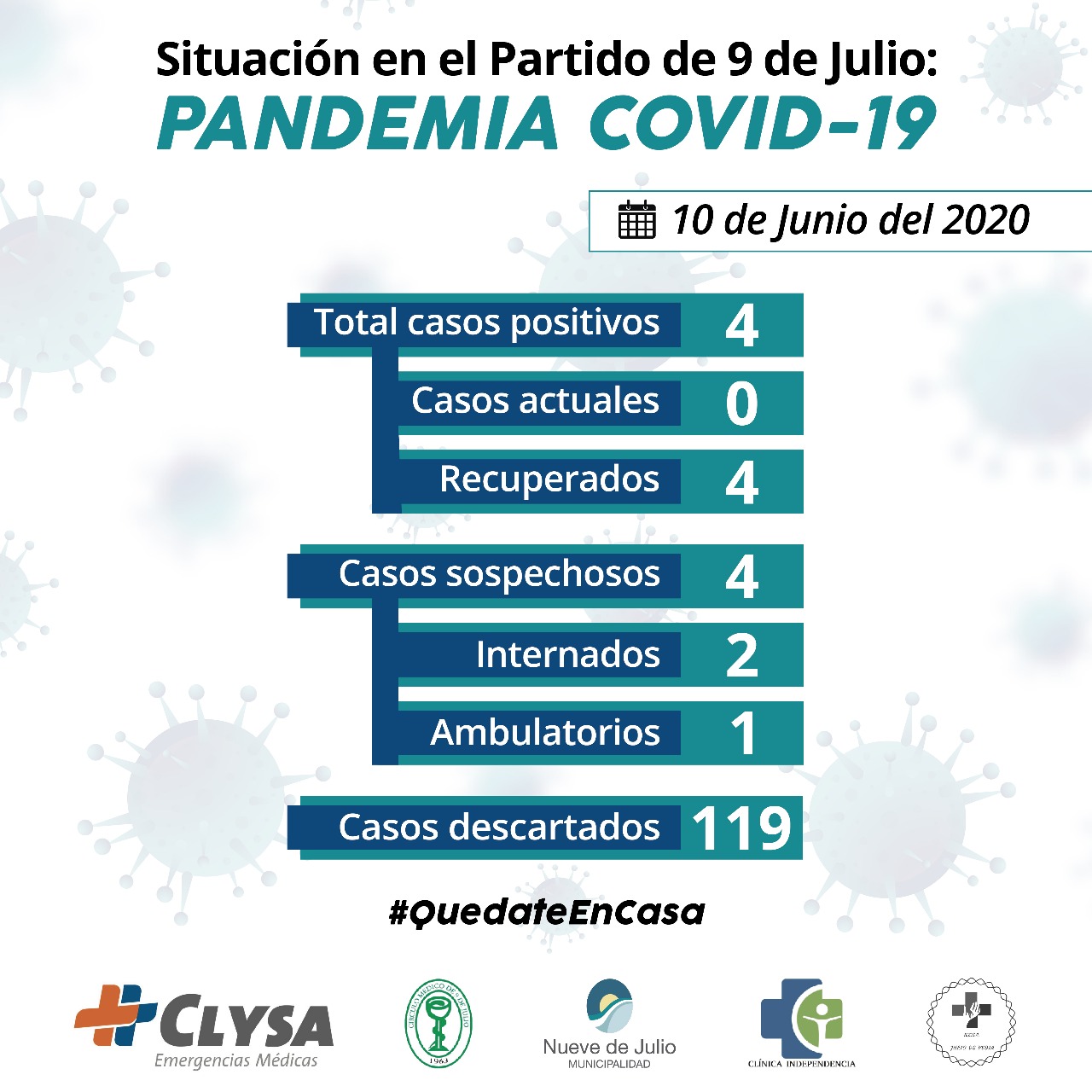 Hasta el momento se registraron cuatro casos positivos desde el comienzo de la pandemia, los cuales ya están recuperados, en tanto que se han descartados ciento diecinueve (119).