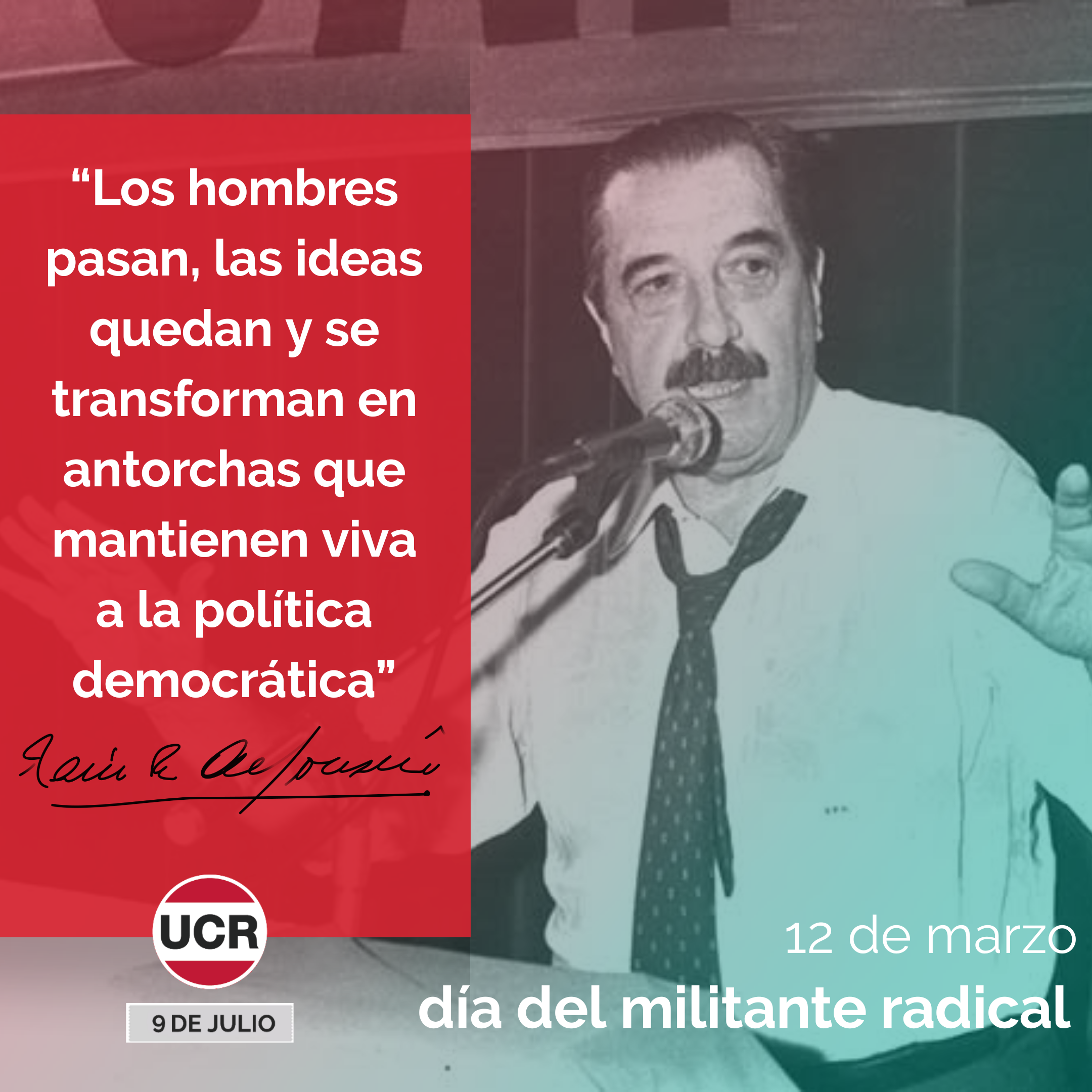 UCR Comité local comunica: En el día de nacimiento de Raúl Alfonsín los radicales celebramos el día del militante en reconocimiento a su vida, su legado, sus ideas y su compromiso con la democracia. Recordamos, también, a todas las correligionarias y correligionarios que desde hace 129 años buscan hacer de Argentina un país mejor.