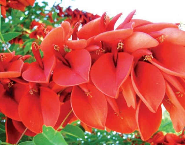 La flor de ceibo, también denominada seibo, seíbo o bucaré, fue declarada flor nacional argentina por Decreto del Poder Ejecutivo de la Nación Nº 138474/42 (23 de diciembre de 1942). Es un árbol originario de América, especialmente de Argentina (zona del litoral), Uruguay (donde también es flor nacional), Brasil y Paraguay. Crece en las riberas del Paraná y del Río de la Plata, pero también se lo puede hallar en zonas cercanas a ríos, lagos y zonas pantanosas. Pertenece a la familia de las leguminosas. No es un árbol muy alto y tiene un follaje caduco de intenso color verde. Sus flores son grandes y de un rojo carmín. Su tronco es retorcido. Sus raíces son sólidas y se afirman al suelo contrarrestando la erosión que provocan las aguas. Su madera, blanca amarillenta y muy blanda, se utiliza para fabricar algunos artículos de peso reducido. Sus flores se utilizan para teñir telas.
