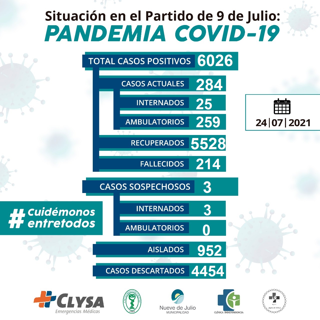 Es importante informar que recibieron el alta veintinueve (29) pacientes, y de los doscientos ochenta y cuatro (284) que cursan la enfermedad Covid-19, veinticinco (25) se encuentran internados y el resto de los casos activos, un total de 259, se encuentran cursando la enfermedad en forma ambulatoria.