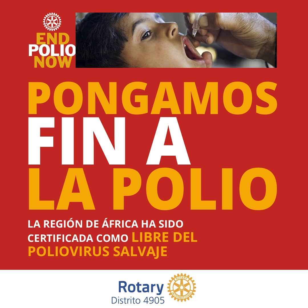 PONGAMOS FIN A LA POLIO LA REGIÓN DE ÁFRICA Ha SIDO CERTIFICADA COMO LIBRE DEL POLIOVIRUS SALVAJE Rotary Distrito 4905″.