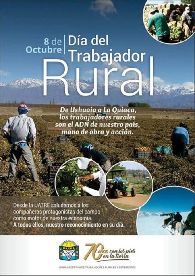 Desde UATRE, hacen extensivo el saludo a todos los trabajadores. Se instituyó históricamente ses día  recordando la sanción del 8 de octubre de 1944 del primer Estatuto del Peón de Campo, mediante decreto 28.169 del gobierno de facto presidido por el general Edelmiro Farrell, cuyo Secretario de Trabajo fue Juan Domingo Perón. Dicho Estatuto representó un gran avance para la época. Entre otros aspectos, el estatuto establecía medidas en defensa del salario del peón y la estabilidad del trabajador, el pago en moneda nacional, la ilegalidad de deducciones o retenciones, salarios mínimos, descansos obligatorios, alojamiento en mínimas condiciones de higiene, buena alimentación, provisión de ropa de trabajo, asistencia médico-farmacéutica y vacaciones pagas.
