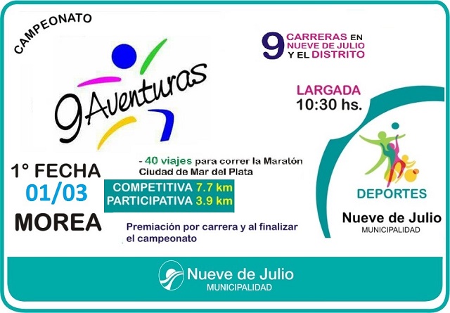 La Dirección de Deportes de la Municipalidad de Nueve de Julio avanza en los preparativos de la quinta edición del campeonato de maratones “9 Aventuras”, que tendrá su inicio el domingo 1ero. de marzo en la localidad de Morea.