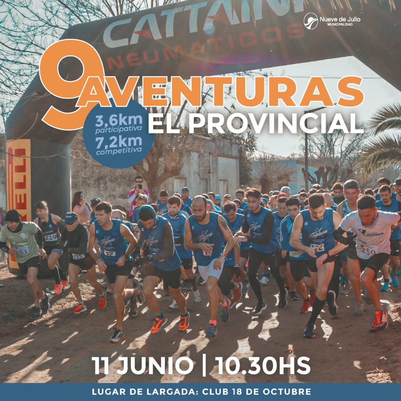 La Dirección de Deportes de la Municipalidad de Nueve de Julio llevará adelante, el domingo 11 del corriente mes de junio, la cuarta fecha del campeonato 9 Aventuras, en la localidad de El Provincial, con largada en la sede del Club 18 de Octubre, a las 10,30 hs.