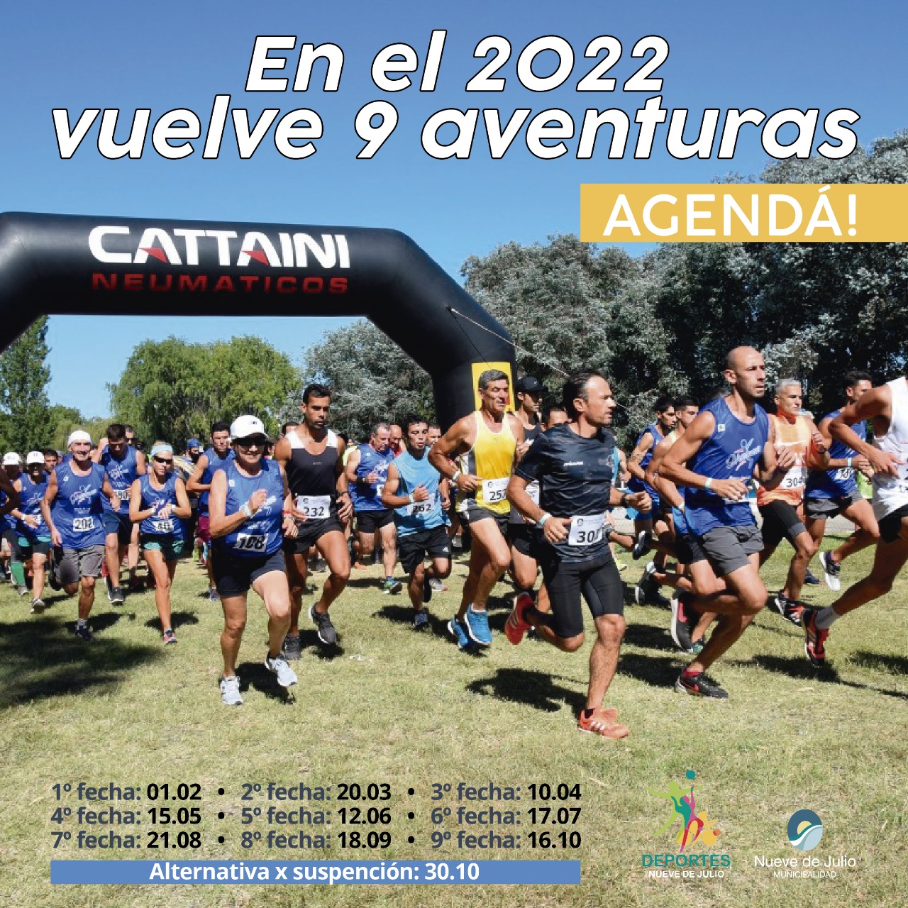 El tradicional certamen de maratones 9 Aventuras, desarrollado por la Dirección de Deportes de la Municipalidad de Nueve de Julio, ya tiene conformada su agenda de pruebas para la temporada 2022, luego de una larga espera por las restricciones que impuso la pandemia.