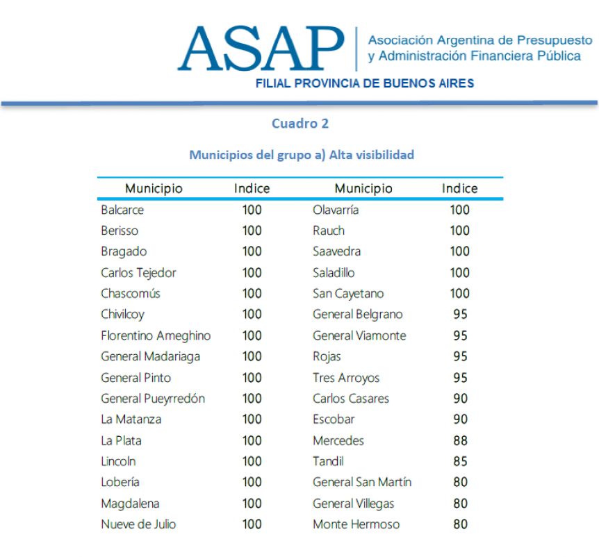 Solo 32 municipios bonaerenses cuentan con un alto grado de visibilidad de las cuentas públicas, de acuerdo con un informe de la Asociación Argentina de Presupuesto y Administración Financiera Pública.