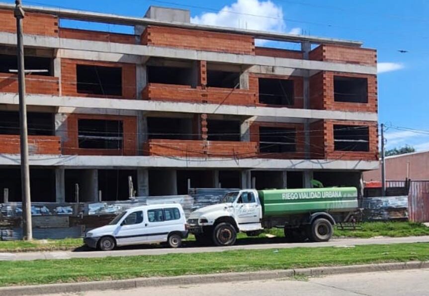 El camión, en cambio, viejo regador de la época de Battisttella, aun cuenta con la gráfica de aquella gestión. Parece que ahí quedó también. Lo llamativo es que sean dos, en el mismo lugar. Vecinos se preguntan si no será un parking no oficial para vehículos oficiales.