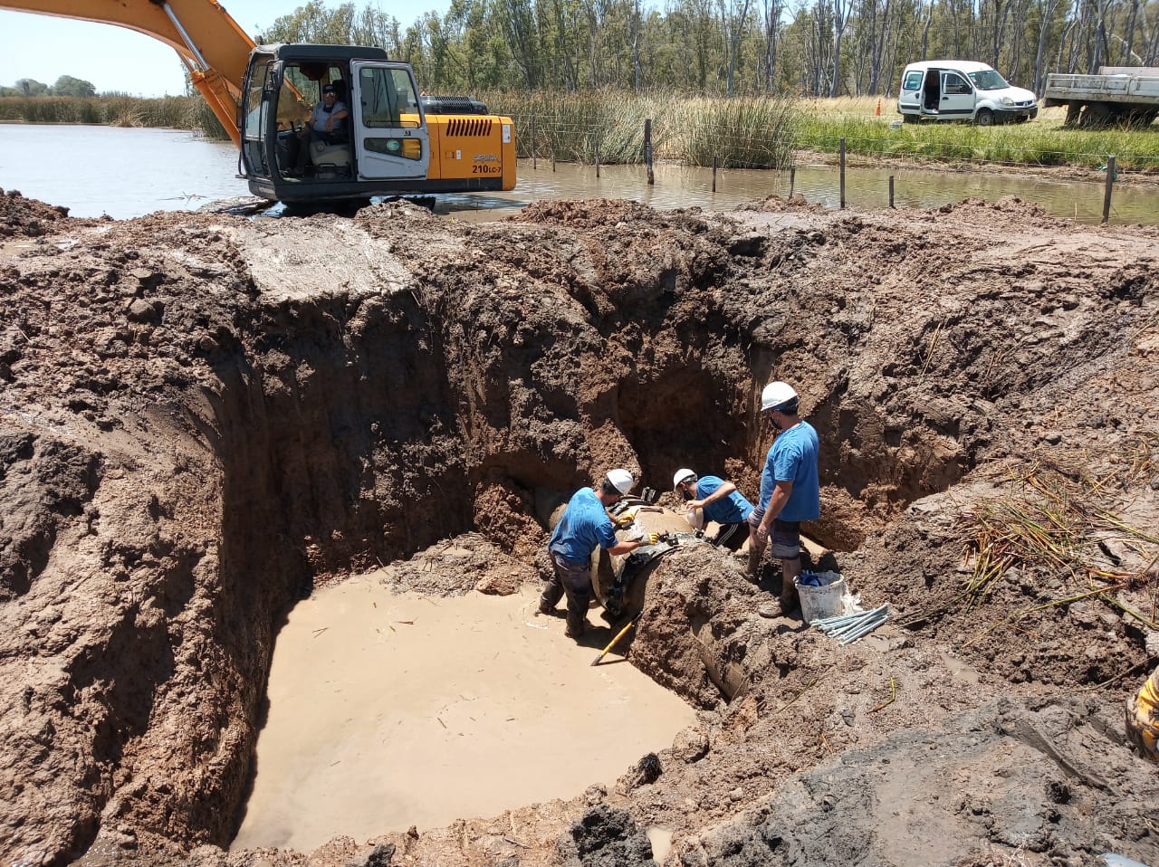En estos momentos se llevan a cabo las tareas preliminares para la última intervención, ya que la avería está ubicada sobre el sector de la laguna y ante la inmensa cantidad de agua que se registra debido a las condiciones naturales del lugar y las lluvias registradas, no es posible efectuar las maniobras.