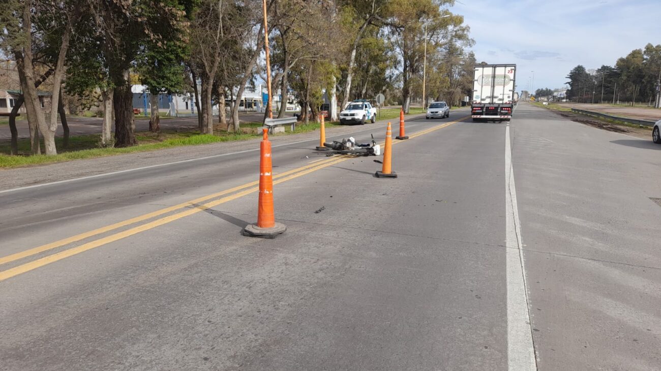 Policía tomó conocimiento que sobre Ruta Nac. N° 5 KM 262,300 ocurrió una colisión entre una Motomel Sxhua 150  conducida por un hombre de 24 años de edad oriundo de la localidad de Nueve de Julio, movilizándose en sentido ascendente, contra un Automóvil Marca Chevrolet Cruze conducido por un hombre de 69 años de edad oriundo de la localidad de Tres Lomas, quien último se encontraba transitando en sentido ascendente.