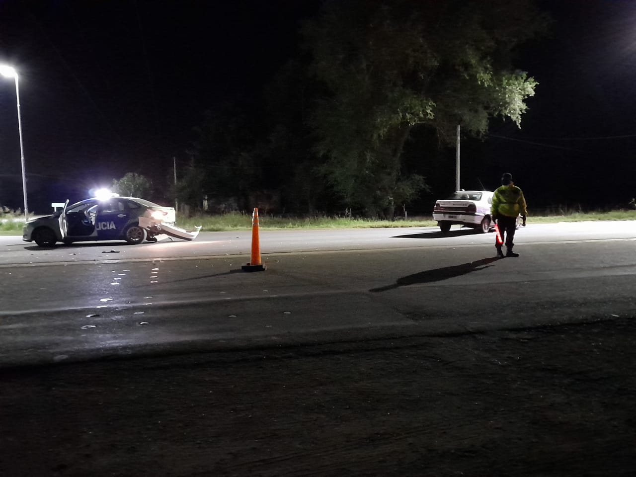 Parte policial: Alrededor de las 3.40 horas, se toma intervención en Ruta 65 y Av Urquiza de accidente de tránsito entre un Móvil Patrullero Ford Focus perteneciente a la Estación de Policía de 9 de Julio, conducido por un efectivo policial masculino en compañía de un efectivo policial femenina, contra un rodado Renault 19 color blanco conducido por masculino de 31 años con domicilio en planta urbana de Dudignac. A raíz de la colisión, todos los intervinientes sufrieron lesiones, el efectivo policial masculino sufrió un golpe en el cráneo y traumatismos varios, hallándose en observaciones en el Hospital Local fuera de peligro, el personal policial femenina sufrió un golpe en cervical y fue dada de alta y por último, el masculino que conducía el otro rodado sufrió traumatismos varios, permaneciendo en observaciones fuera de peligro. Interviene UFI 2 Mercedes, labrando actuaciones por el delito de Lesiones Culposas. Se hizo presente al lugar personal de Policía Científica Bragado y Dr Horacio Lagomarsino de la Ayudantía Fiscal de 9 de Julio quien impartió directivas.