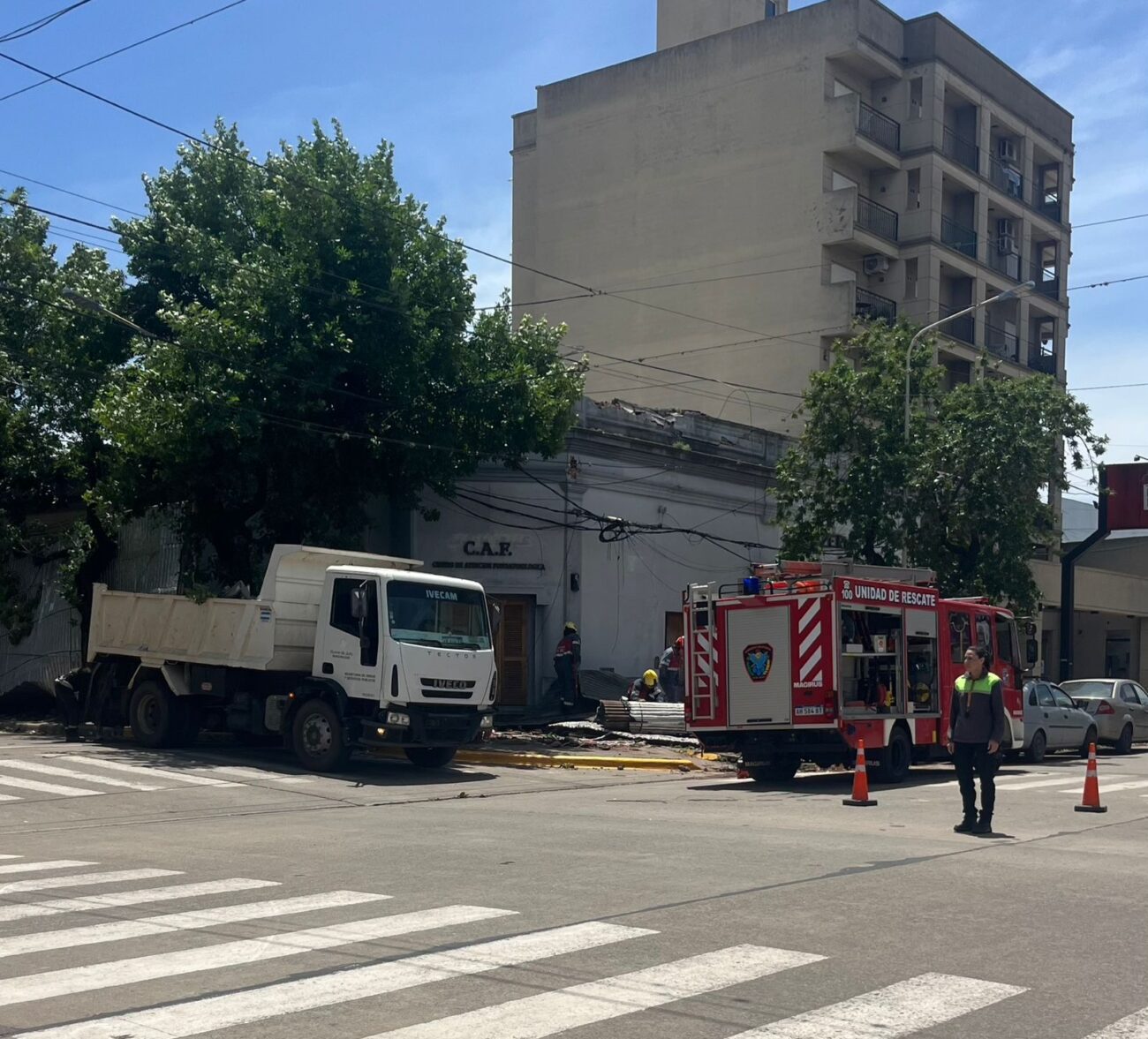 El equipo de Espacios Verdes se abocó de inmediato a los puntos críticos. El reporta oficial indicó 23 árboles de gran porte caídos que obstruían la vía pública. El objetivo inicial fue la liberación de los pasos vehiculares y peatonales, una tarea que se extendió durante todo el domingo y el corriente lunes con varias cuadrillas dedicadas al retiro de ramas y árboles. Además, aun se están realizando tareas de limpieza en el Parque General San Martín. En un esfuerzo conjunto con Bomberos y la Cooperativa Eléctrica y de Servicios (CEyS), el Municipio también trabajó en la remoción de escombros de una estructura de techo gravemente afectada en la intersección de calle Mitre y Santa Fe.