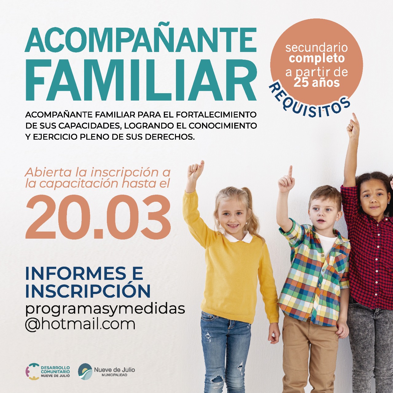 La Municipalidad de Nueve de Julio, a través de la Secretaría de Desarrollo Comunitario, desarrollará una nueva edición de la formación en Acompañamiento Familiar.
