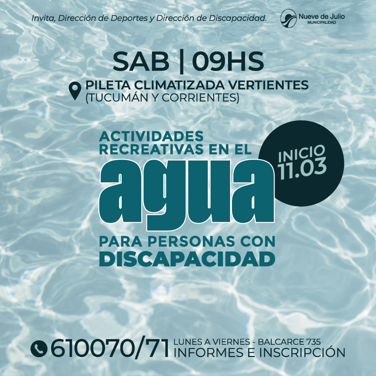 La Municipalidad de Nueve de Julio, a través de las Direcciones de Deportes y Discapacidad, lanza la actividad de actividades recreativas en el agua para personas con discapacidad.