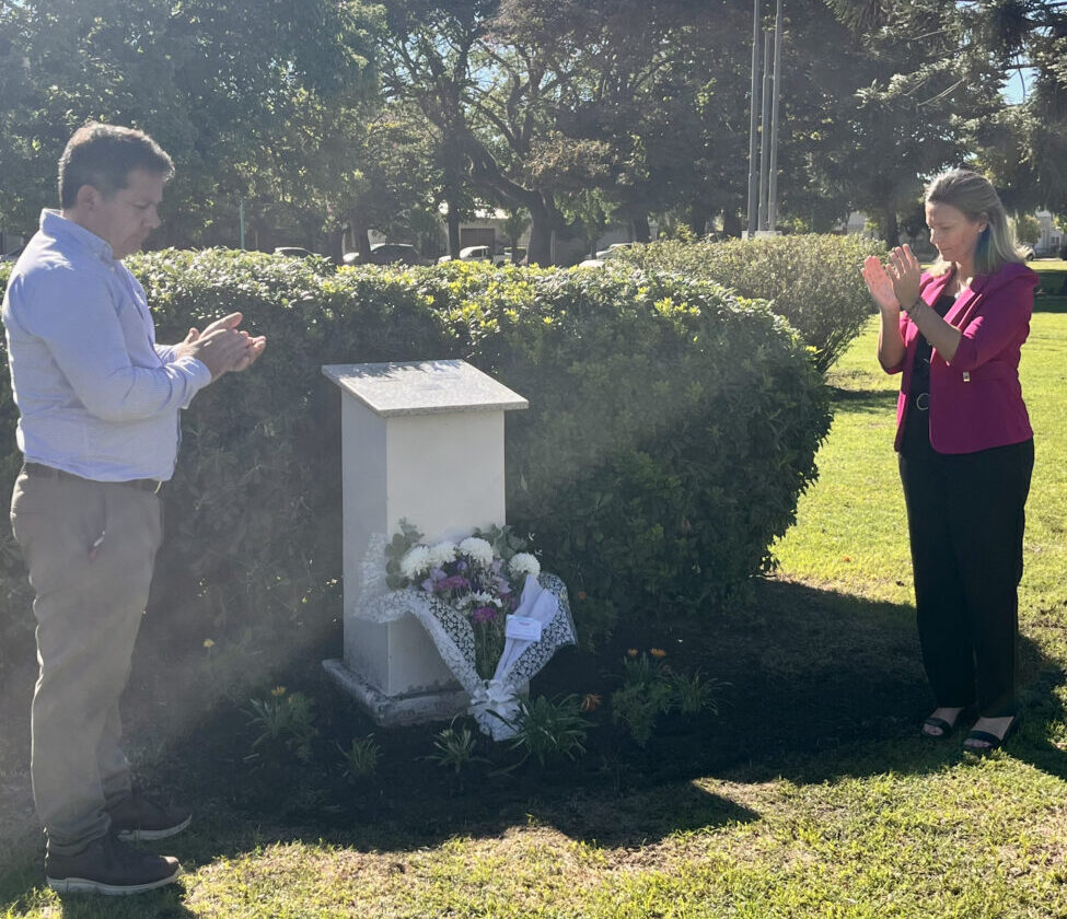 La intendente municipal, María José Gentile, encabezó el acto junto a miembros de su gabinete y del Concejo Deliberante. Tras los acordes del Himno Nacional y un respetuoso minuto de silencio, la jefa comunal y el presidente del legislativo local, Esteban Naudín, rindieron homenaje a las víctimas locales del terrorismo de Estado. Una ofrenda floral fue colocada frente al monolito que mantiene vivos los nombres de Mercedes Bogliolo, «Mimí» Gassman y María Esther Infesta, las tres mujeres nuevejulienses desaparecidas durante el régimen.