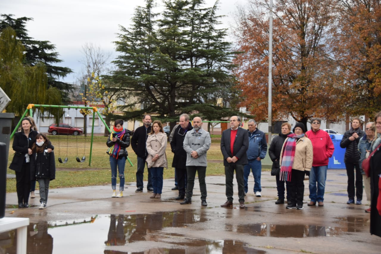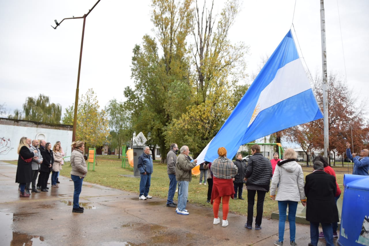Con motivo de la conmemoración del 212 aniversario de la Revolución de Mayo, y luego de realizarse en la mañana del martes, en la Escuela Secundaria Nro. 11 de Facundo Quiroga los actos conmemorativos oficiales, en la mañana de hoy, autoridades municipales encabezadas por el Secretario de Gobierno, Víctor Altare; la secretaria de Salud, María José Gentile y la Directora de Adultos Mayores, María Eugenia Martínez, participaron del acto de izamiento de banderas en el Playón Polideportivo Municipal.
