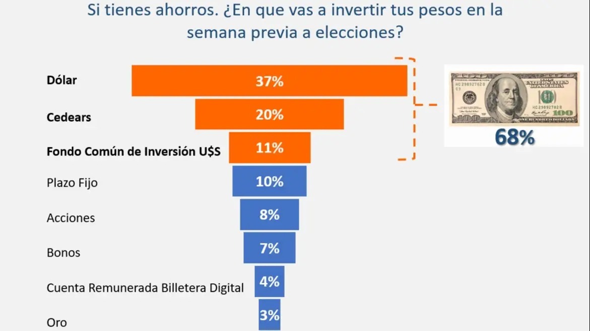 En la antesala de las elecciones legislativas nacionales, el mercado volvió a reaccionar con un patrón familiar: casi siete de cada diez argentinos con capacidad de ahorro optaron por refugiarse en instrumentos dolarizados, en lo que analistas definen como una estrategia de cobertura frente a una eventual corrección del tipo de cambio.