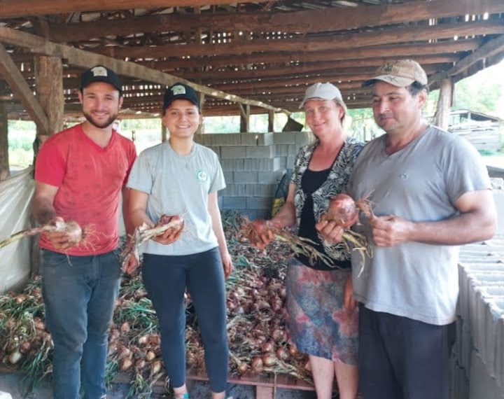 La producción de cebolla está presente en la zona de la ruta 14 desde hace 20 años y los técnicos y personal de INTA Misiones llevan adelante un papel fundamental acompañando a los productores desde la obtención de las semillas, el abono, el riego, en las enfermedades y hasta la cosecha: “Es un producto que no requiere químicos, hay que realizar la limpieza con asada y pasarla varias veces para desmalezar la planta. Para la cosecha, hay toda una técnica que Amanda va aprendiendo por etapas. Por ejemplo, a partir de los primeros días de noviembre empieza un volteo de plantas y hay que terminar así el volteo por hectárea. Después se retira con tierra lo más seca posible”, cuenta Eliseo.