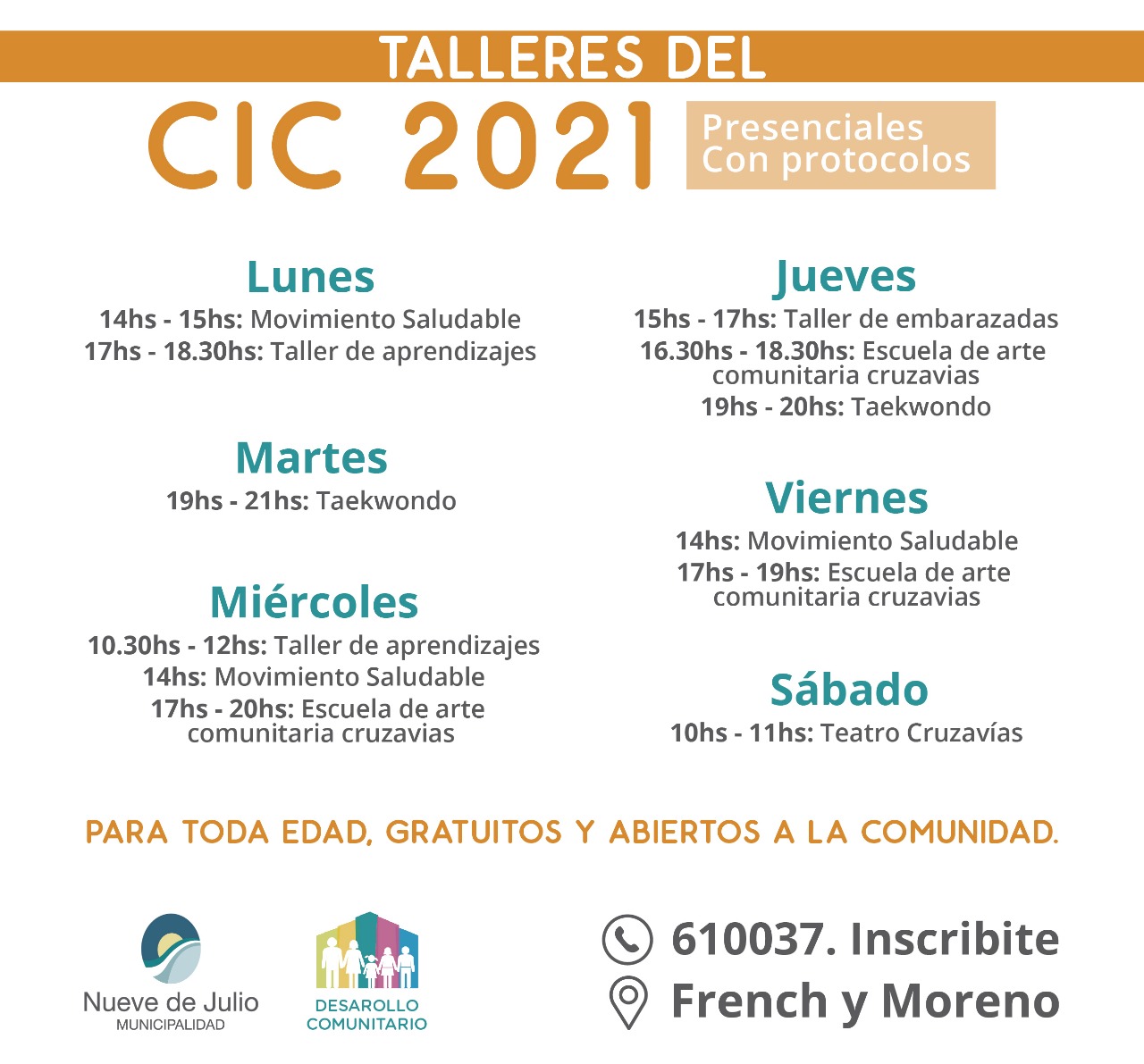 La municipalidad de 9 de Julio, a través de la Secretaría de Desarrollo Comunitario invita a los vecinos a participar de las distintas actividades que se llevan adelante en el Centro Integrador Comunitario.