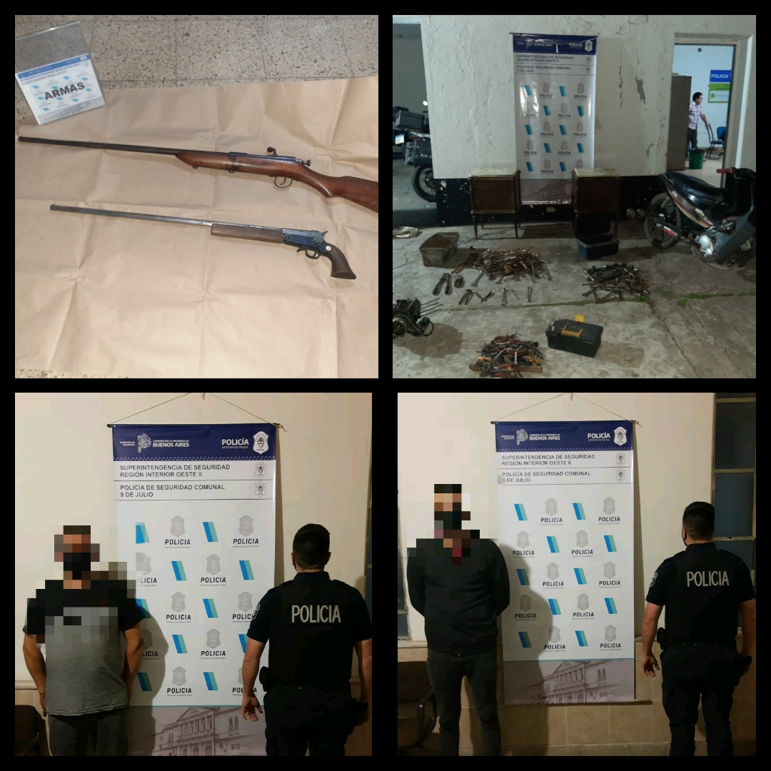 En el procedimiento, un sujeto de 20 años de edad quedó aprehendido, siendo uno de los imputados por el ilícito. En tanto, en el mismo acto, también se procedió a la aprehensión de otro sujeto de 41 años (familiar del anterior) por encontrarse en su domicilio dos armas de fuego (dos rifles calibre 14) sin contar con la debida autorización legal para ello,