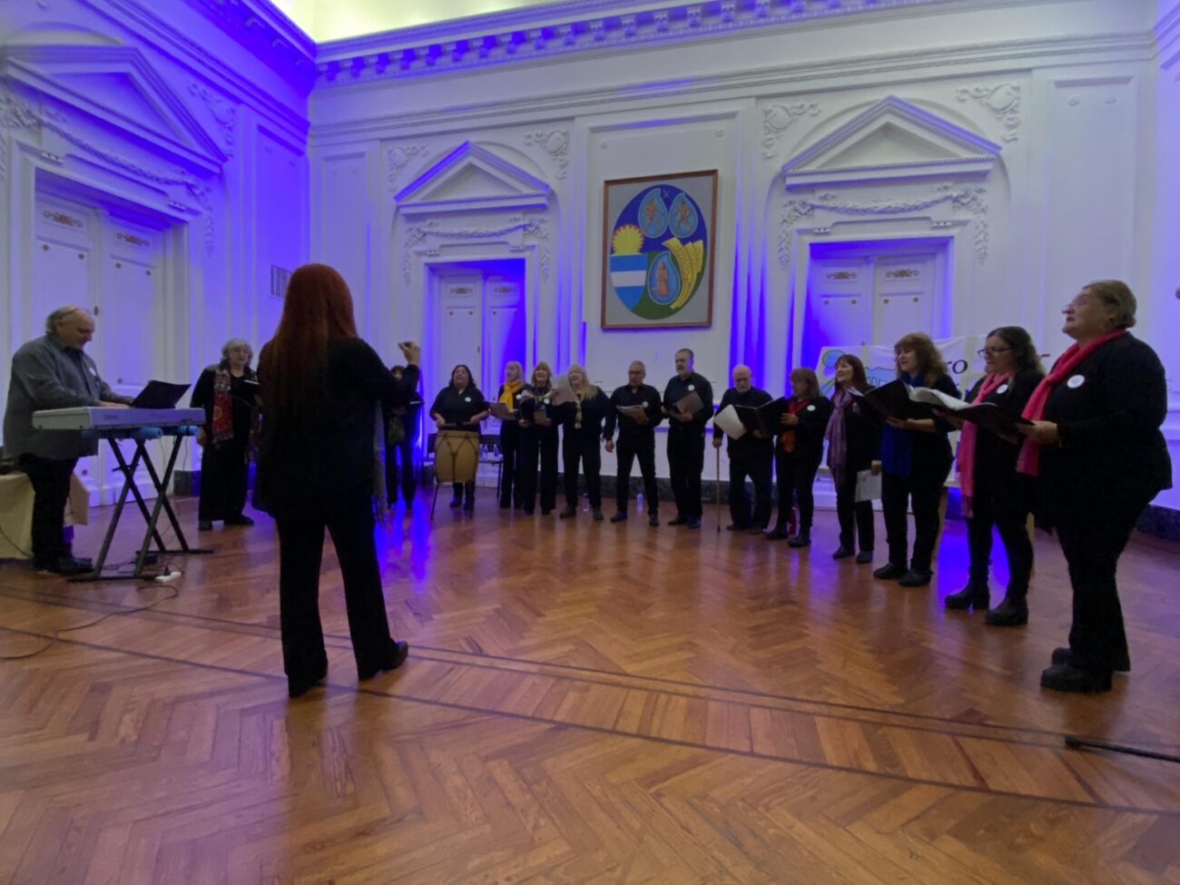 El Coro Polifónico Ciudad de Nueve de Julio celebró sus 74 años de actividad con un gran concierto en el Salón Blanco Municipal. Además del coro anfitrión, que tuvo la dirección de Pablo Giangrante, actuaron el Coro Polifónico Municipal de la ciudad de Arrecifes, dirigido por María Auil, y el Coro Musicorum de la Facultad de Ingeniería del Ejército.