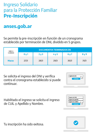 ANSES: A partir del viernes 27, se realizará la pre-inscripción para percibir el Ingreso Fliar. de Emergencia