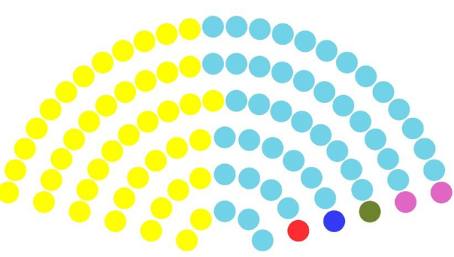 En la Cámara alta, si es que hay unidad en los bloques, los amarillos mantendrán la supremacía con 26 bancas y los azules quedarán con 20.