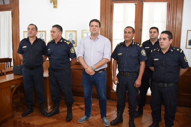 Como estaba previsto, en horas de este mediodía, en el recinto de sesiones del H. Concejo Deliberante, el Intendente Municipal, Mariano Barroso, acompañado de autoridades policiales encabezadas por el titular de la Jefatura Departamental, Comisario Mayor Jose Luis Gil, procedió a poner en funciones al nuevo titular de la Policía Comunal y al Jefe de la Estación de Policía.