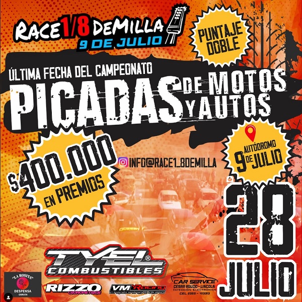 El próximo 28 de julio se llevará a cabo la última fecha del campeonato de invierno 2024 de Picadas 1.4 millas, de motos y autos en el Autódromo Ciudad de 9 de Julio, Guillermo