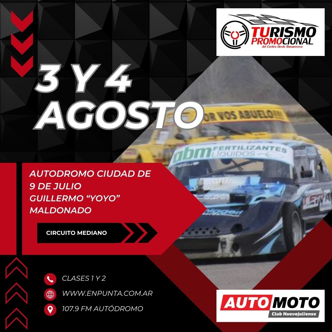 El próximo fin de semana, 3 y 4 de Agosto en el Autódromo Ciudad de 9 de Julio, Guillermo "Yoyo" Maldonado, se disputará la 4ta. fecha del Turismo Promocional, con la presencia de más de 40competidores entre las Clase 1 y 2.