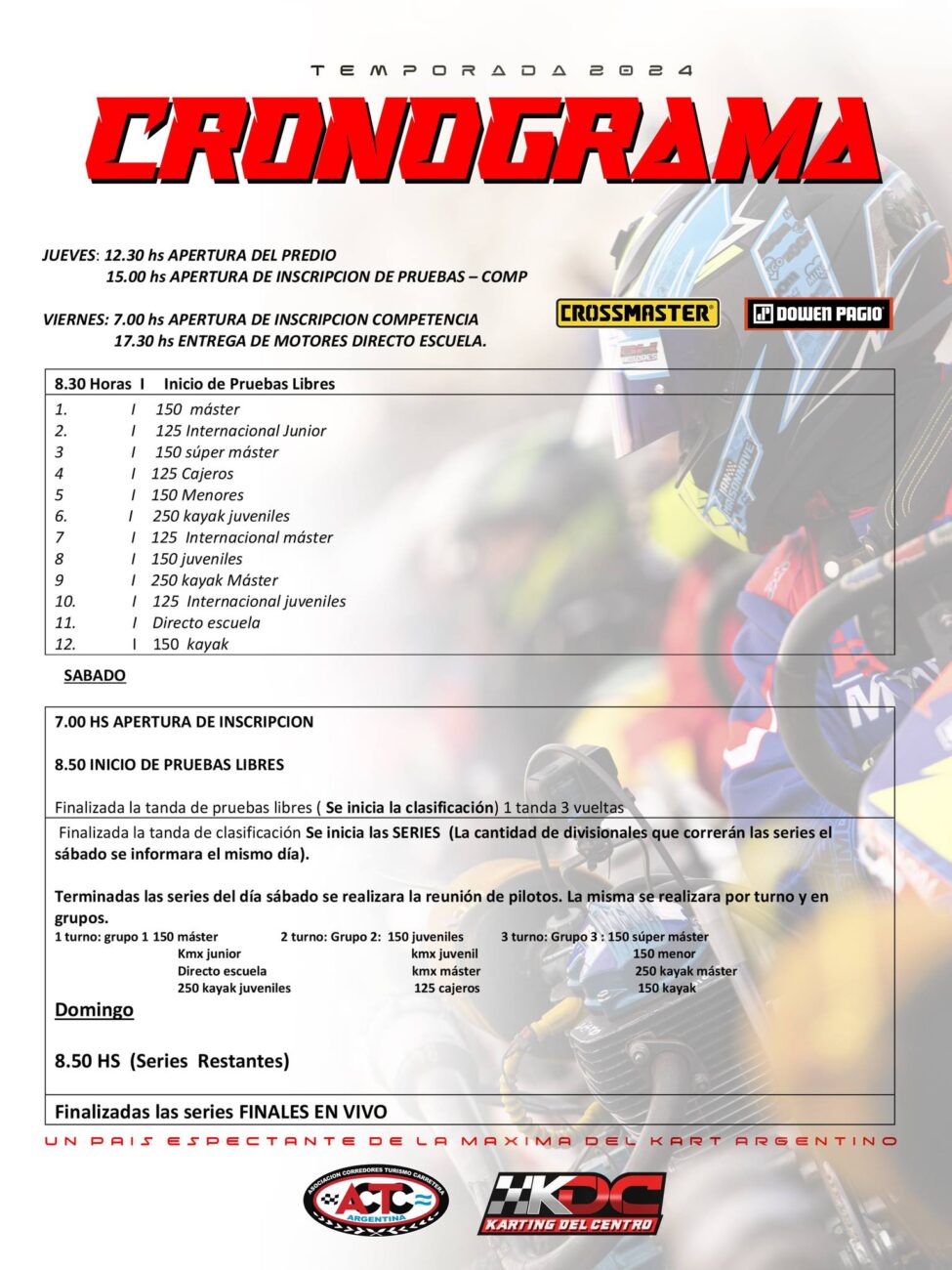 • Domingo: Desde las 8:50 hs Series restantes y finales de cada categoría, Podio al finalizar cada final.
