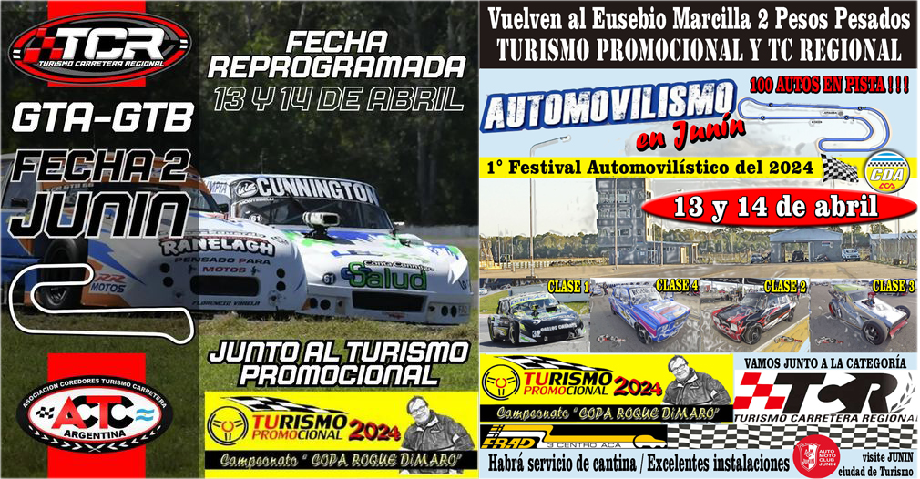 La expectativa es muy grande ya que el Público podrá ver en pista a las «Cafeteras» de la Clase 3, a los Fiat 128 con un parque de 20 autos y a los TC 4 Litros que entre la Clase 1 y los GTA y GTB del TC Regional serán casi 40 máquinas que harán vibrar el pavimento juninense.