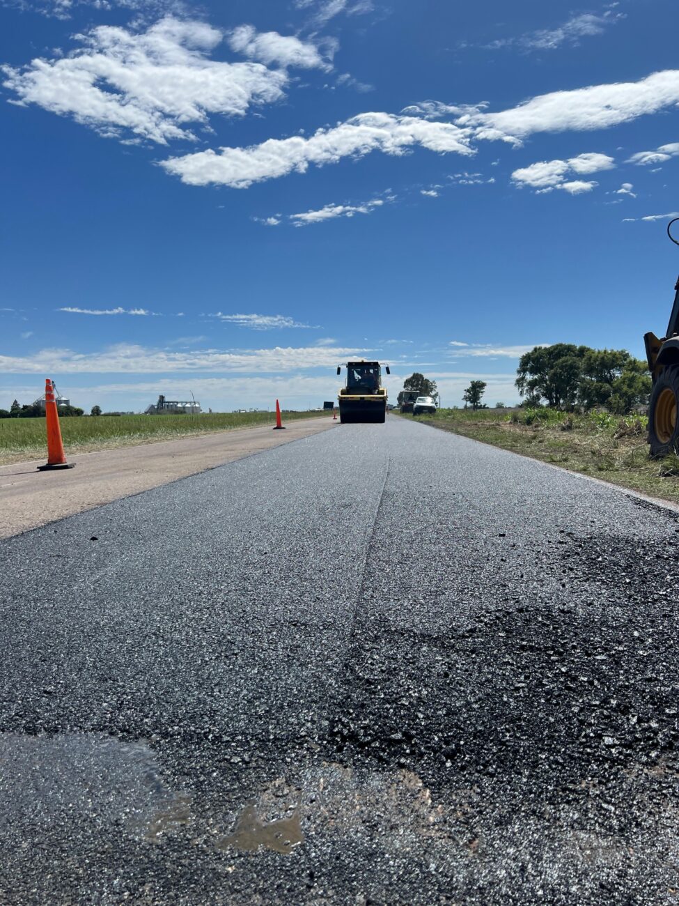Actualmente, las tareas se concentran en el bacheo entre los kilómetros 508,5 y 510, cerca de Cañada Seca. Las cuadrillas realizan apertura de caja, limpieza de cancha y colocan mezcla asfáltica que permitirá una circulación segura en un corredor de vital importancia, ya que conecta dos de los puertos cerealeros más importantes, el de Rosario y el de Bahía Blanca.