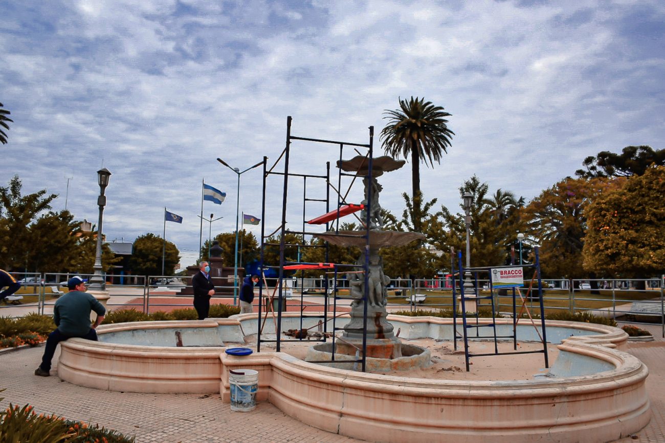 Como fuera anunciado, la Municipalidad de Nueve de Julio se encuentra ejecutando la reparación de la histórica y tradicional fuente central de la Plaza Belgrano, la que se está reparando y acondicionando prácticamente a nuevo, efectuándose trabajos de reparación del piso de la misma, las figuras alegóricas y un nuevo sistema de circulación de agua, en tanto que también se procederá a su repintado y colocación de nueva iluminación, que podrá variar de color, recordando distintas fechas, como se hace en estos momentos con el Palacio Municipal.