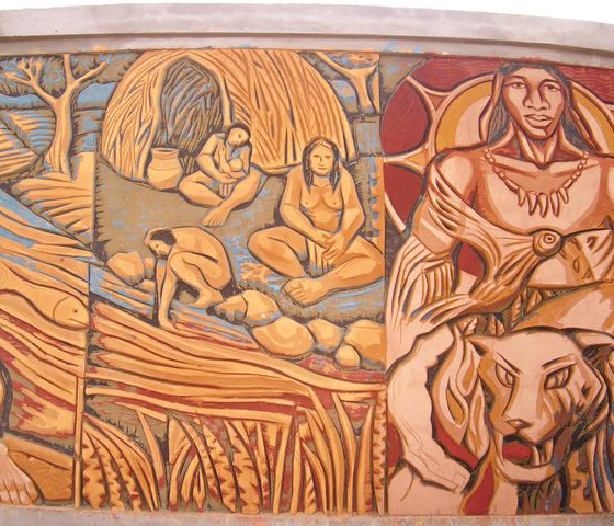 Cuatro murales emplazados en el sitio -diseñados por los artistas plásticos José Kura y Daniela Almeida, y guionados por la museóloga Verónica Noya y la arqueóloga Alicia Tapia- relatan momentos claves en la historia de esas poblaciones.