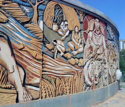 La primera pintura cuenta la vida de los originarios antes de la llegada de los españoles y la segunda expresa la percepción del arribo de los europeos y el impacto cultural que provocó en los nativos. En tanto, el tercer mural hace referencia a los principales actores sociales de la misión franciscana y el cuarto denuncia las consecuencias de la colonización: hambrunas, enfermedades y explotación de la fuerza de trabajo.