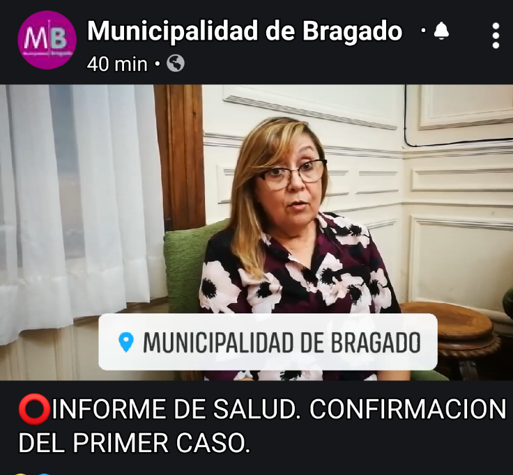 RegionalesBragado: Primer caso confirmado de coronavirus20 marzo 2020 FacebookTwitterPinterestWhatsAppImpresiónTelegram Hace escasos minutos, desde la secretaría de salud municipal, confirmaron positivo para un paciente con síntomas. AMPLIAREMOS.Últimas noticias Localesadmin - 15 noviembre 2025Fussari: planificar la Producción La Subsecretaria de Producción del Municipio, Cecilia Fusari, pasó por ‘Temprano para todo’ (Supernova 97.9) para contar muchas de... Deportes Jóvenes amateurs que piden pista admin - 15 noviembre 2025 General Dólares Prestados y Reservas al límite admin - 15 noviembre 2025 General El Mercado celebró el acuerdo con EEUU admin - 14 noviembre 2025 Locales Municipios en rojo: dudas por sueldos y aguinaldo admin - 14 noviembre 2025 Noticias relacionadas Robo en Sociedad Rural de Bolivar Regionales admin - 14 noviembre 2025 Guillermo Michel: “La eliminación del monotributo es un pedido del FMI” Regionales admin - 14 noviembre 2025 Polémica por el plan de Bullrich para los caminos rurales Regionales admin - 14 noviembre 2025 Carlos Casares, 50% del territorio rural bajo agua Regionales admin - 13 noviembre 2025