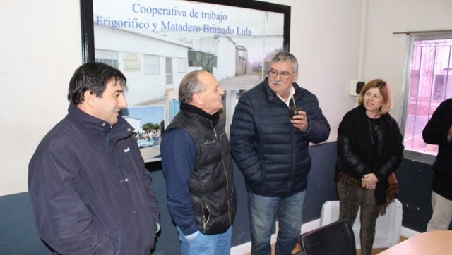 Recibieron a los funcionarios bonaerenses las autoridades de la Cooperativa de Trabajo Frigorífico y Matadero Bragado Ltda. Su presidente, Carlos Alberto Alietti; el secretario, Daniel Antonio Villalba; y el tesorero, José Gabriel Ortiz.