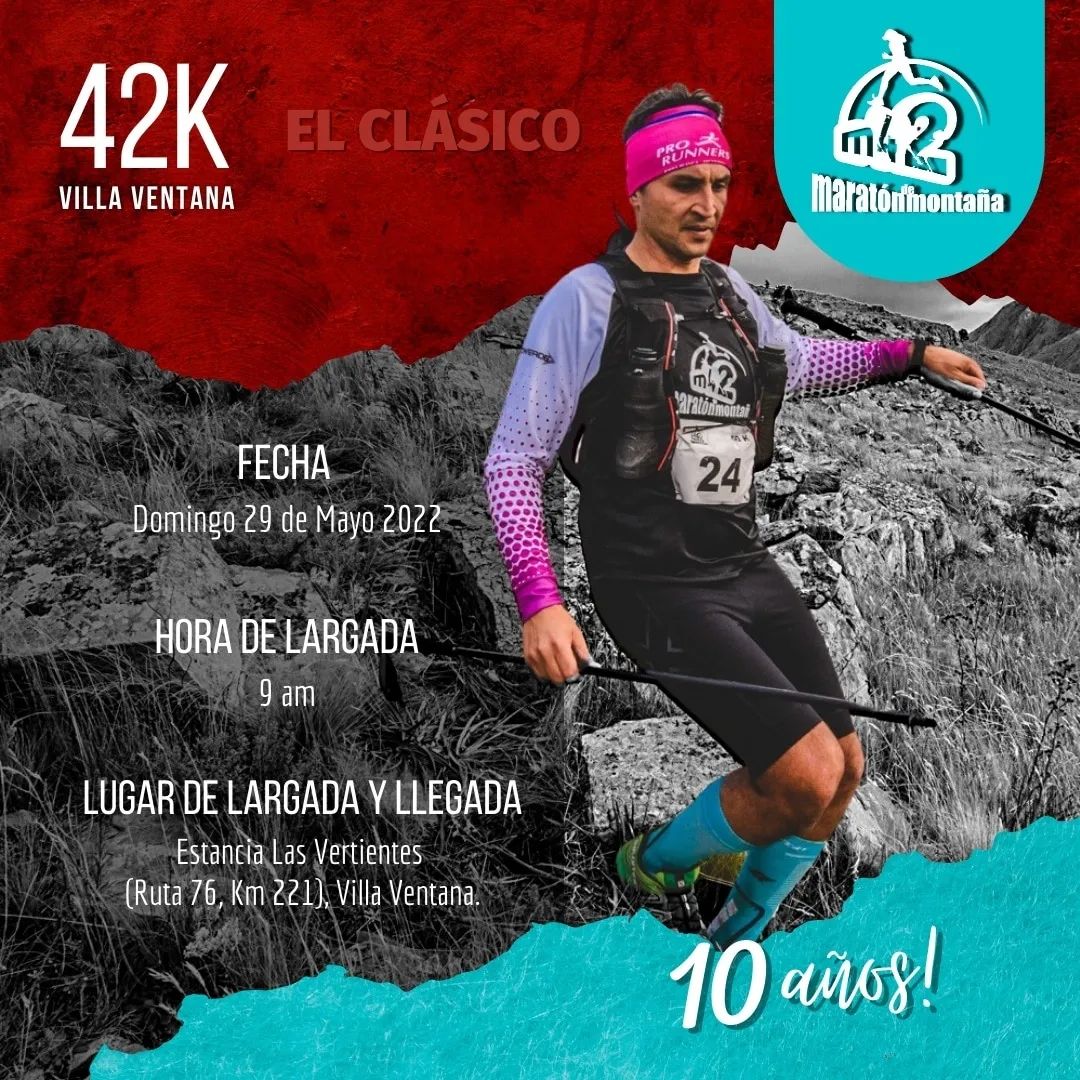 Descripción: La carrera competitiva y social se realizará en el marco del paisaje increíble de la estancia Las Vertientes, con más de 1.800 corredores y con circuitos de 50, 42, 25 y 10 kilómetros. Además, se desarrollará la categoría running kids. Actividad arancelada. Inscripciones viernes 28 y sábado 29 en la Delegación Municipal de Villa Ventana, plaza Salerno. Cronograma detallado en: www.facebook.com/MaratonM42/ Organiza FC Producciones con el acompañamiento del Municipio de Tornquist.