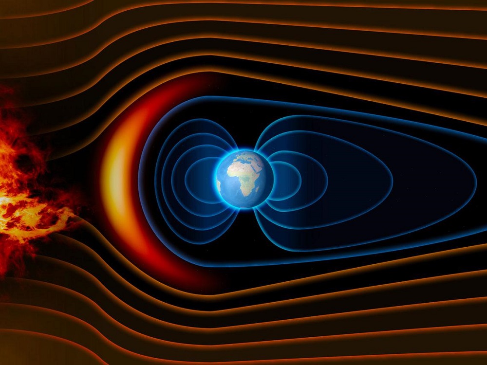 El campo magnético de la Tierra es vital para la vida en nuestro planeta. Es una fuerza compleja y dinámica que nos protege de la radiación cósmica y las partículas cargadas del Sol. El campo magnético es generado en gran parte por un océano de hierro líquido en espiral sobrecalentado que forma el núcleo externo alrededor de 3000 km debajo de nuestros pies. Actuando como un conductor giratorio en una dinamo de bicicleta, crea corrientes eléctricas, que a su vez generan nuestro campo electromagnético en constante cambio.