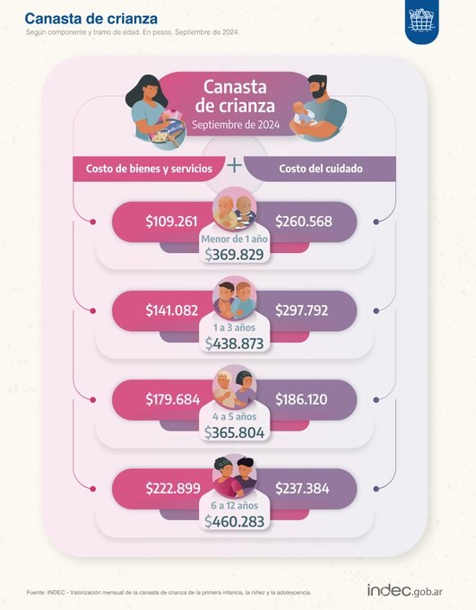 La denominada canasta de crianza alcanzó los $460.283 en septiembre, índice que mide los gastos mínimos para mantener a las niñas y niños de 6 a 12 años, según informó el Instituto Nacional de Estadísticas y Censos (INDEC).