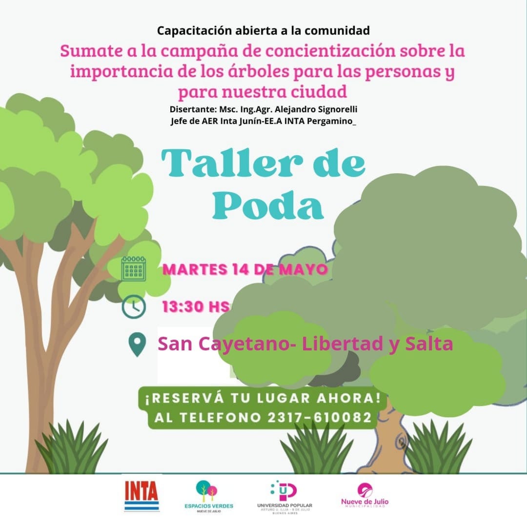 La Municipalidad de Nueve de Julio, a través de la Universidad Popular, la Dirección de Espacios Verdes y el INTA, recuerda que se ofrecerá una capacitación abierta a la comunidad, el próximo martes 14 del corriente, a las 13.30 hs., en el nuevo ámbito del Centro de Desarrollo Socio Productivo “San Cayetano”, ya que originalmente iba a realizarse ene el Palacio Municipal.