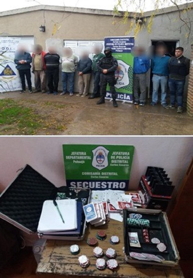 En el lugar había un sector exclusivo para llevar a cabo los juegos prohibidos y en momentos que el personal policial uniformado ingresa al mismo observan que en una mesa se estaba desarrollando juego con cartas y fichas de diferentes colores y valores logrando la APREHENSIÓN del “ORGANIZADOR” y del “BANQUERO” mientras que el resto de los que se hallaban en la mesa fueron trasladados a la Dependencia policial donde se les recepcionó declaración.