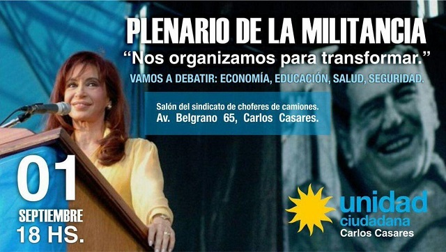 Bajo la consigna «Nos Organizamos para Transformar», UC realizará este 1 de septiembre un «plenario de la militancia» en Carlos Casares. Los temas de debate serán Economía, Seguridad, Educación y Salud. La cita será a las 18 horas, en el salón del sindicato de choferes de camiones.