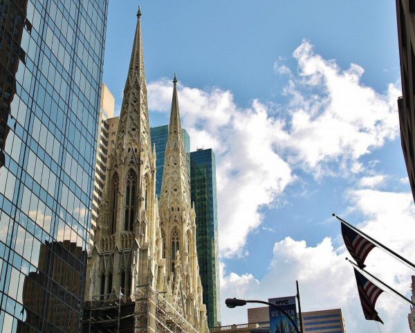 Esto se debe a que cuando se construyó a partir de 1858, el edificio se construyó con el propósito de que sus torres dominaran el cielo de Nueva York, pero ahora se encuentra rodeado de impresionantes rascacielos que minimizan las dimensiones de la catedral católica.