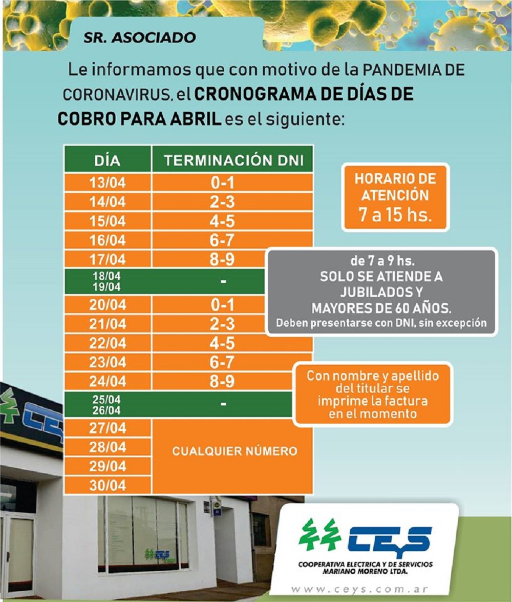 GeneralCEyS: Cronograma para cobro de facturas10 abril 2020 FacebookTwitterPinterestWhatsAppImpresiónTelegram Para los usuarios que deseen abonar sus facturas en los próximos días. Últimas noticias Generaladmin - 14 noviembre 2025El Mercado celebró el acuerdo con EEUULos acciones de la bolsa porteña volaron hasta 27,2% este viernes luego de que EEUU anunciara un amplio acuerdo... Locales Municipios en rojo: dudas por sueldos y aguinaldo admin - 14 noviembre 2025 Locales Grooming: concientizando sobre el acoso en linea admin - 14 noviembre 2025 Regionales Robo en Sociedad Rural de Bolivar admin - 14 noviembre 2025 General Acuerdo Comercial con EEUU: Entre la euforia y la cautela admin - 14 noviembre 2025 Noticias relacionadas El Mercado celebró el acuerdo con EEUU General admin - 14 noviembre 2025 Acuerdo Comercial con EEUU: Entre la euforia y la cautela General admin - 14 noviembre 2025 «No Soy Actriz, Soy Jueza» General admin - 14 noviembre 2025 El FMI y su apoyo con “reservas” General admin - 13 noviembre 2025