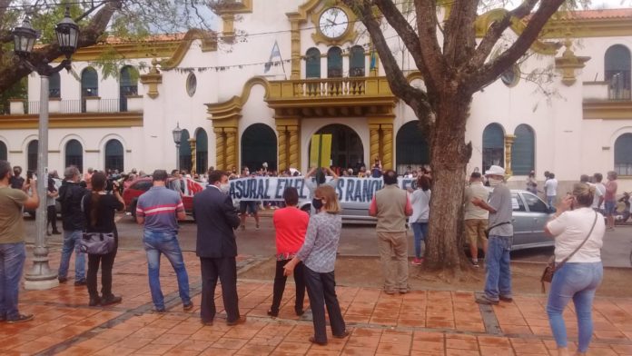 La protesta se realizó en el centro de la ciudad (en las puertas del Palacio Municipal y en el Concejo Deliberante) y contó con los aplausos de quienes marcharon a pie y con bocinazos de una caravana de autos.