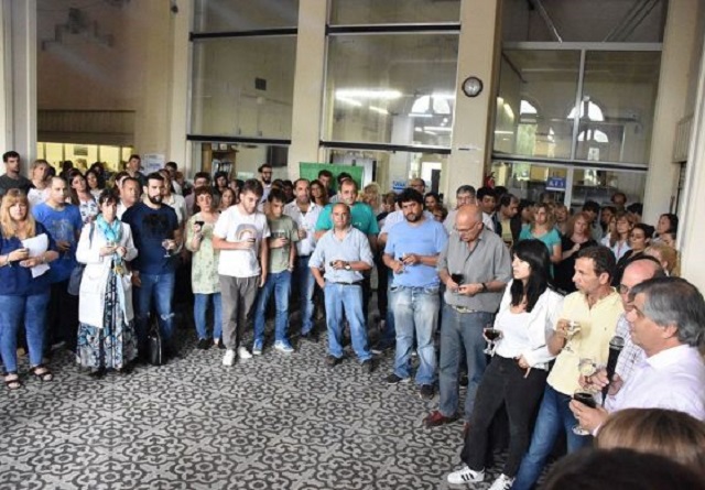 Britos realizó el anuncio, acompañado por el equipo de funcionarios,en el marco de un brindis con los trabajadores, en el Palacio Municipal, con motivo del Día del Empleado Municipal.