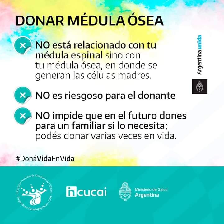 5) Existe un registro mundial con 32 millones de personas anotadas. Este registro se encuentra en una red Internacional llamada BMDW (Bone Marrow Donors Worldwide), la cual agrupa registros de más de 63 países. Argentina posee su propio registro nacional que funciona en el INCUCAI (Instituto Nacional Central Único Coordinador de Ablación e Implante), el cual está afiliado a la BMDW y ayuda a incrementar cada año la lista de argentinos que se suman a la red mundial de donantes voluntarios.