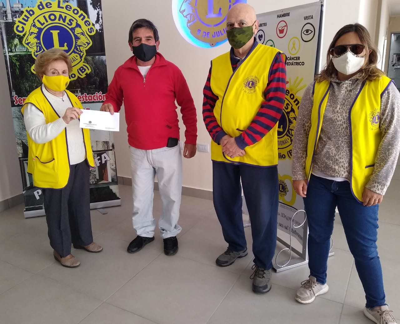 Sorteo de la RIFA 10. Hoy se hizo entrega de la orden de compra de $20.000 al Sr. Roberto GASPARI quien fue beneficiado en el sorteo mensual realizado el día sábado 29 por Quiniela Nacional Nocturna con el N° 8057. Entregó la león presidente Elsa Quintana acompañada por el león tesorero Rubén Ávila y la león Nora Báez.